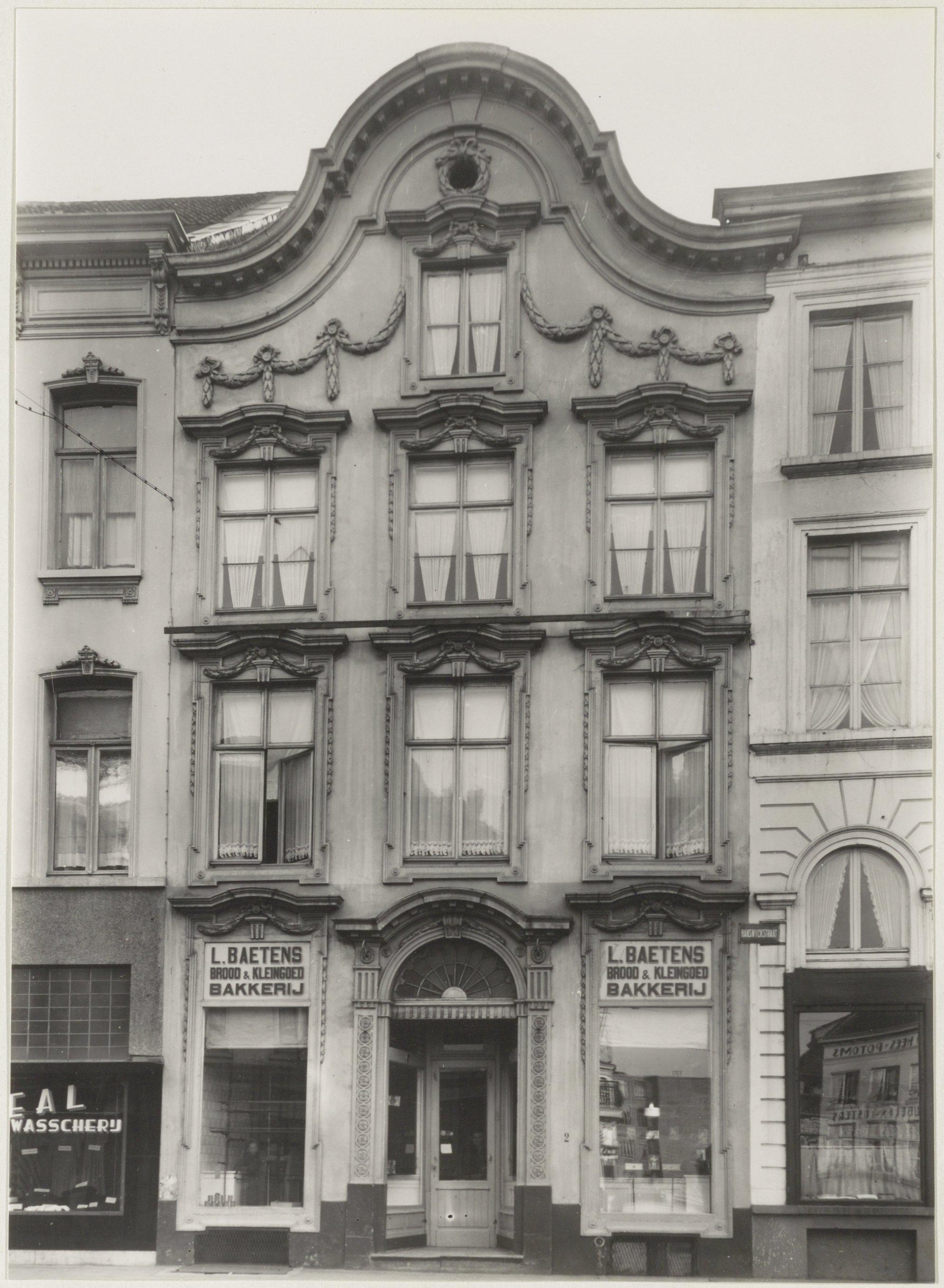 Op de bijgevoegde foto uit de jaren 1940 zijn nog de oorspronkelijke vitrines uit 1774 te zien, toen het pand dienstdeed als bakkerij L. Baetens.
